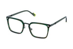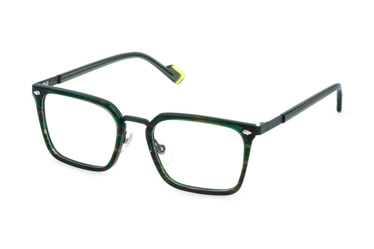 Occhiali da vista uomo modello Sting VST549 (0I76) con montatura in metallo Verde semiopaco e lenti demo.