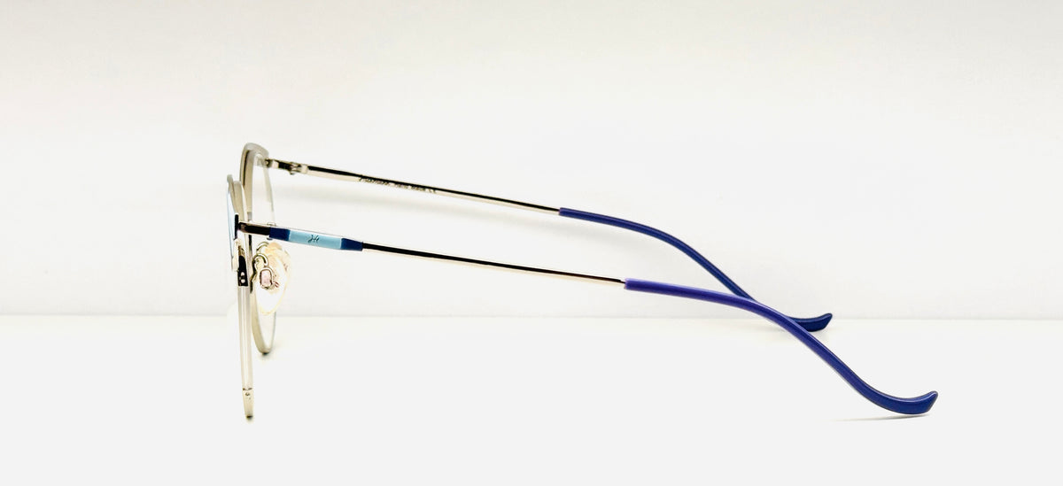 Questa è una montatura da vista femminile del brand Ana Hickmann, caratterizzata da un design elegante e raffinato. Il frontale ha una forma “butterfly” (a farfalla), che conferisce un tocco femminile e sofisticato. La montatura è in metallo, sottile e leggera, garantendo comfort per un uso quotidiano. Il colore è un azzurro/blu tenue, che lo rende versatile ma distintivo. Le aste sono lunghe e proporzionate al frontale, offrendo una buona stabilità una volta indossato.